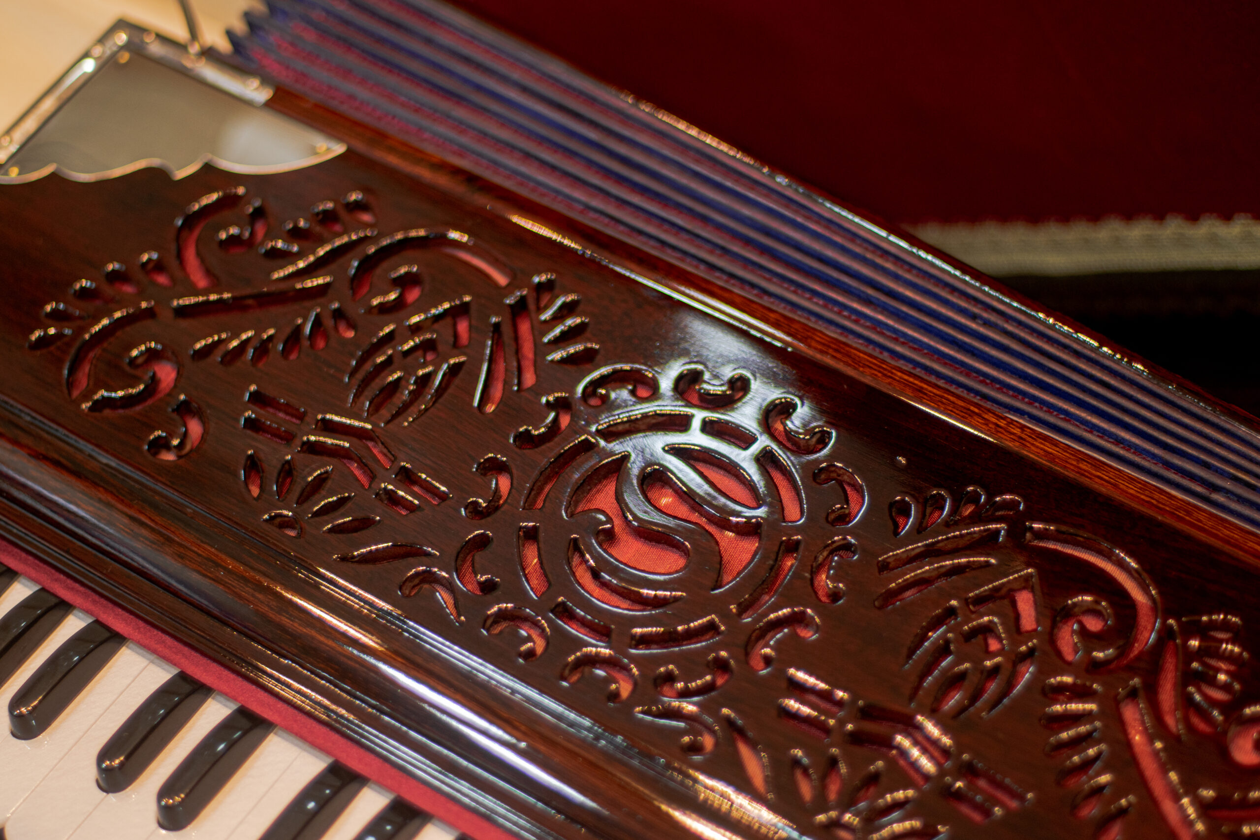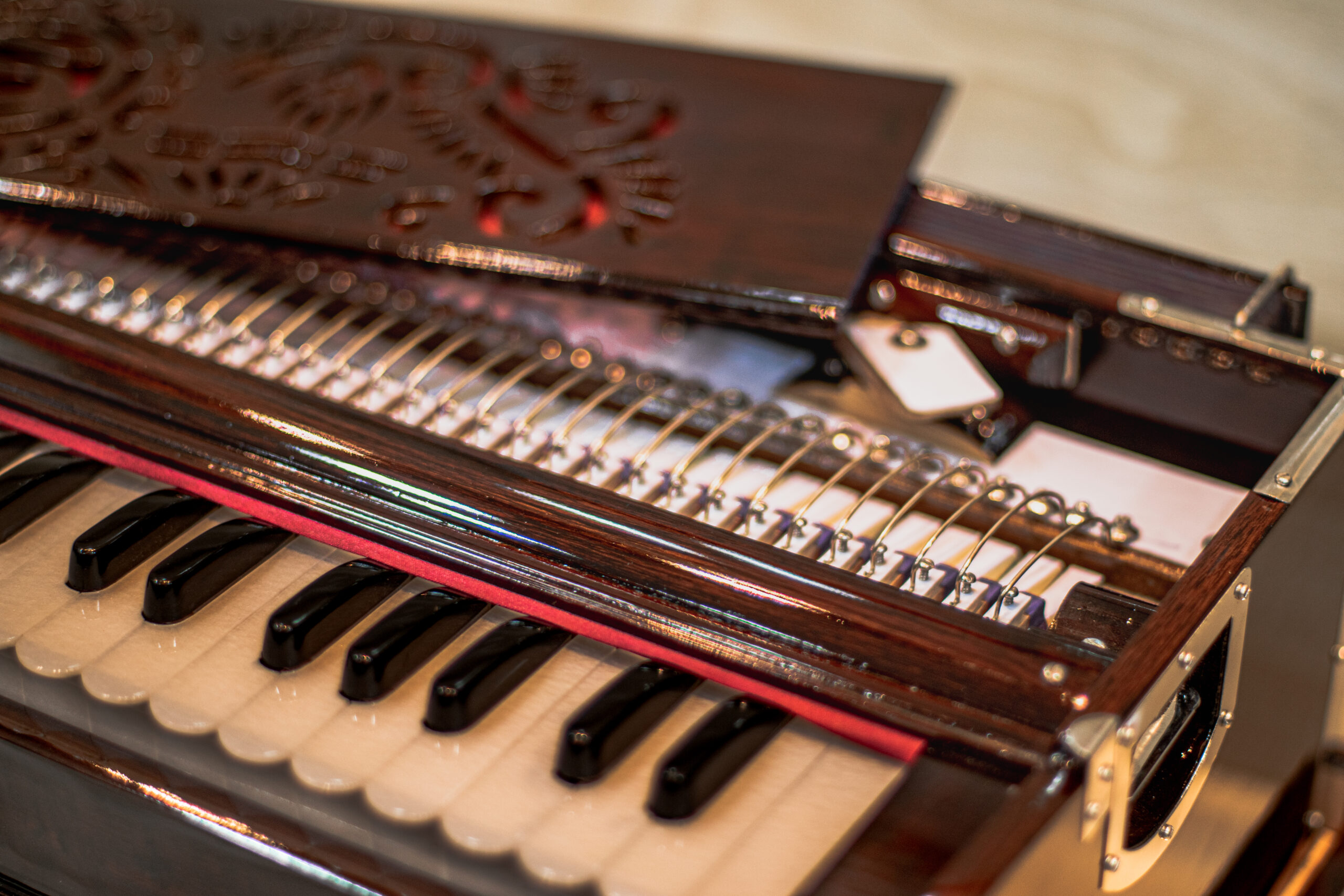 Originating in Europe in the 19th century and later becoming integral to Indian classical and devotional music, the harmonium resembles a small, portable organ. It typically features a wooden body with a keyboard, ranging from one to three octaves, and bellows operated by hand.